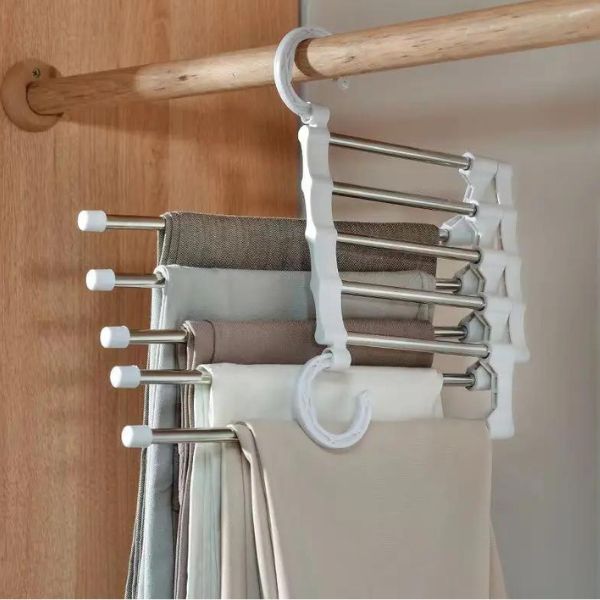 Nie czekaj dłużej! Popraw organizację swojej garderoby i zaoszczędź miejsce dzięki temu wyjątkowemu 5-poziomowemu wieszakowi na spodnie.