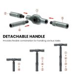 ⚙️ Rękojeść z grzechotką w kształcie litery T zapewnia lepszą dźwignię i wygodę podczas długotrwałego użytkowania, ułatwiając wykonywanie zadań